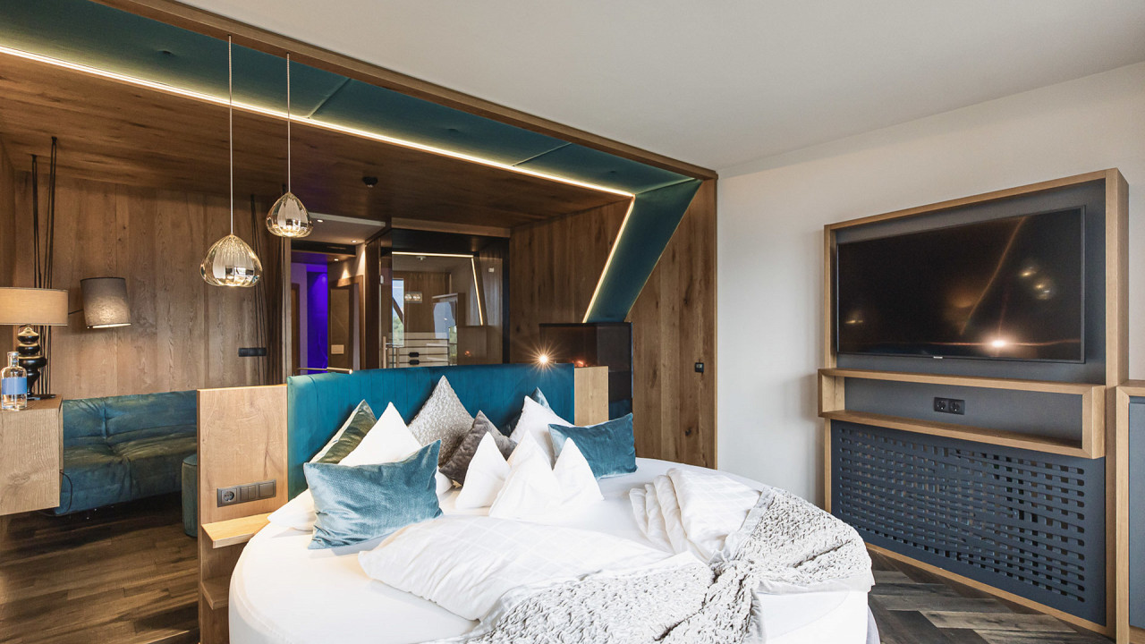 Ognuna delle camere è un sogno di design, tra colori armoniosi e dettagli studiati con cura al fine di rendere il soggiorno confortevole sotto tutti i punti di vista. Alcune suite dispongono anche di sauna privata, come una piccola spa da godersi in totale intimità, mentre altre offrono eleganti lettini sospesi o poltrone a infrarossi. Tutte godono di una vista mozzafiato sui paesaggi circostanti.